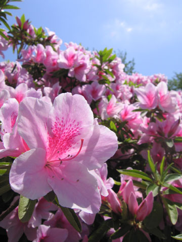 桜の時期が完全に終了となり、次に来る花となると石楠花(しゃくなげ)やツツジとなるわけですが、パレスキッチンのある「中百舌鳥」のひとつ隣の駅、「深井」駅から徒歩5分ほどの水ヶ池の周りのツツジが満開を迎えています。 堺市のツツジと言えば「浅香山浄水場の通り抜け」が有名なのですが、実はこの水ヶ池の方がツツジ自体の株数が10倍近くあり、とても見応えがあるんです。 知る人ぞ知るツツジ鑑賞場所なのですが、約15000株ほどのツツジが植えられているとのことなので、ぜひオススメのポイントですよ~。